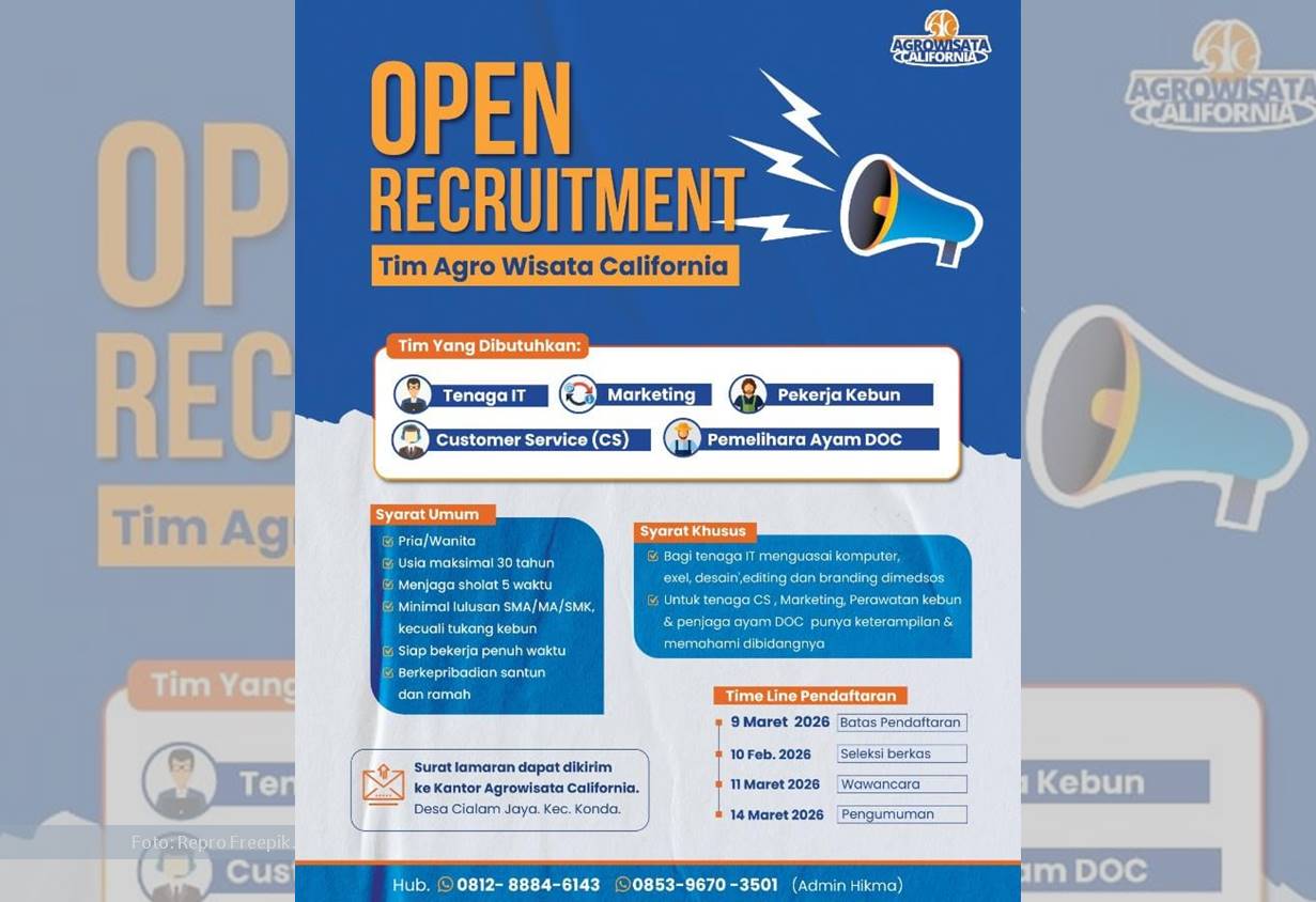 Agrowisata California Buka Lowongan Kerja untuk Lima Posisi: Pendaftaran hingga 9 Maret